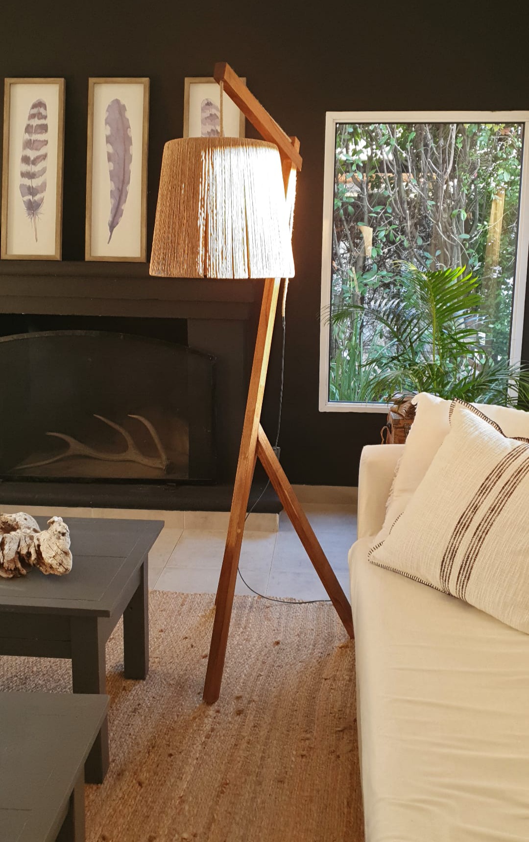 Lámpara fabricada en madera paraíso o petiribi de 1,70 mts de altura total. Disponible también en negro