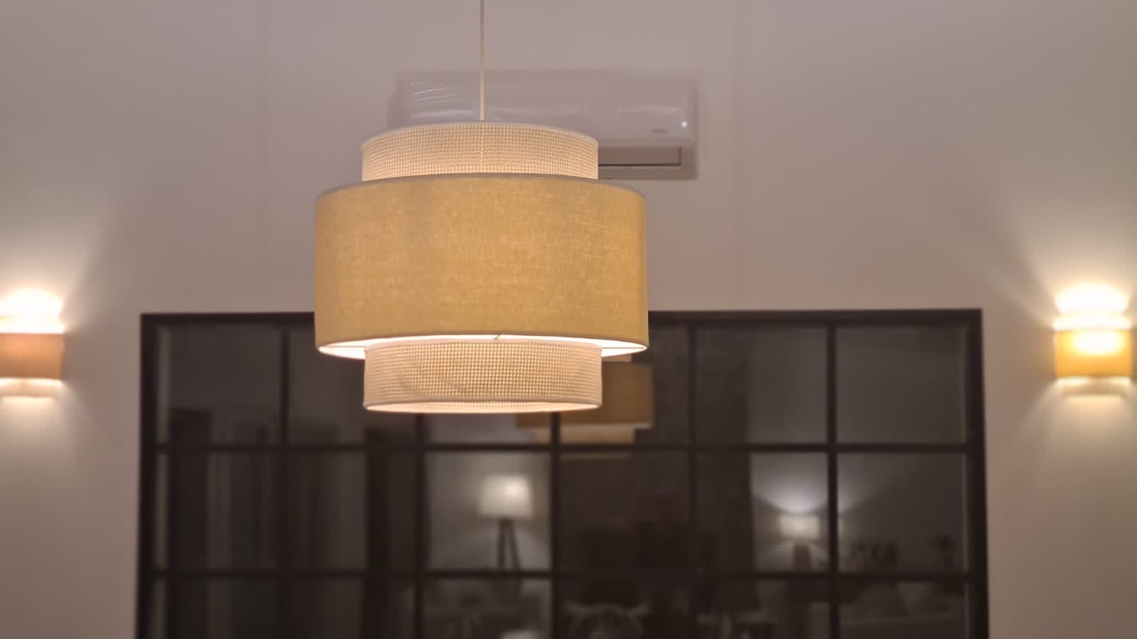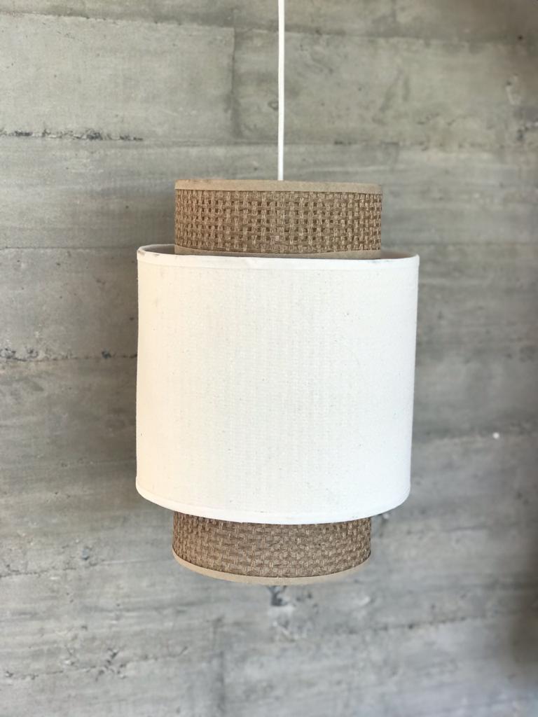 Lampara fabricada en rafia, panama rustico y arpillera. Disponible en diferentes combinaciones de colores y tamaños