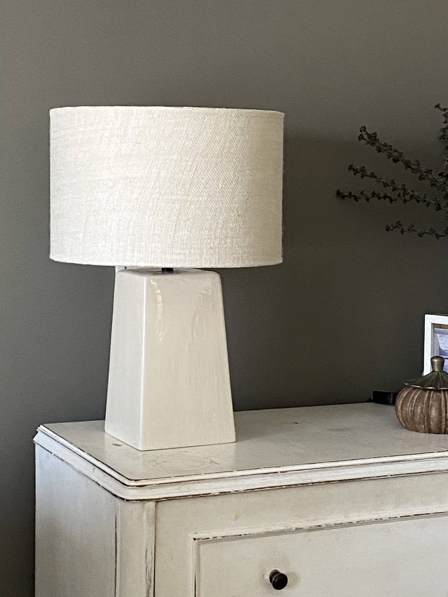 Lámpara de cerámica Berlín. Disponible en 3 tamaños. Disponible en crudo, crudo craqueado, verde, gris topo, gris jaspeado, negro mate. Pantalla de lino o arpillera