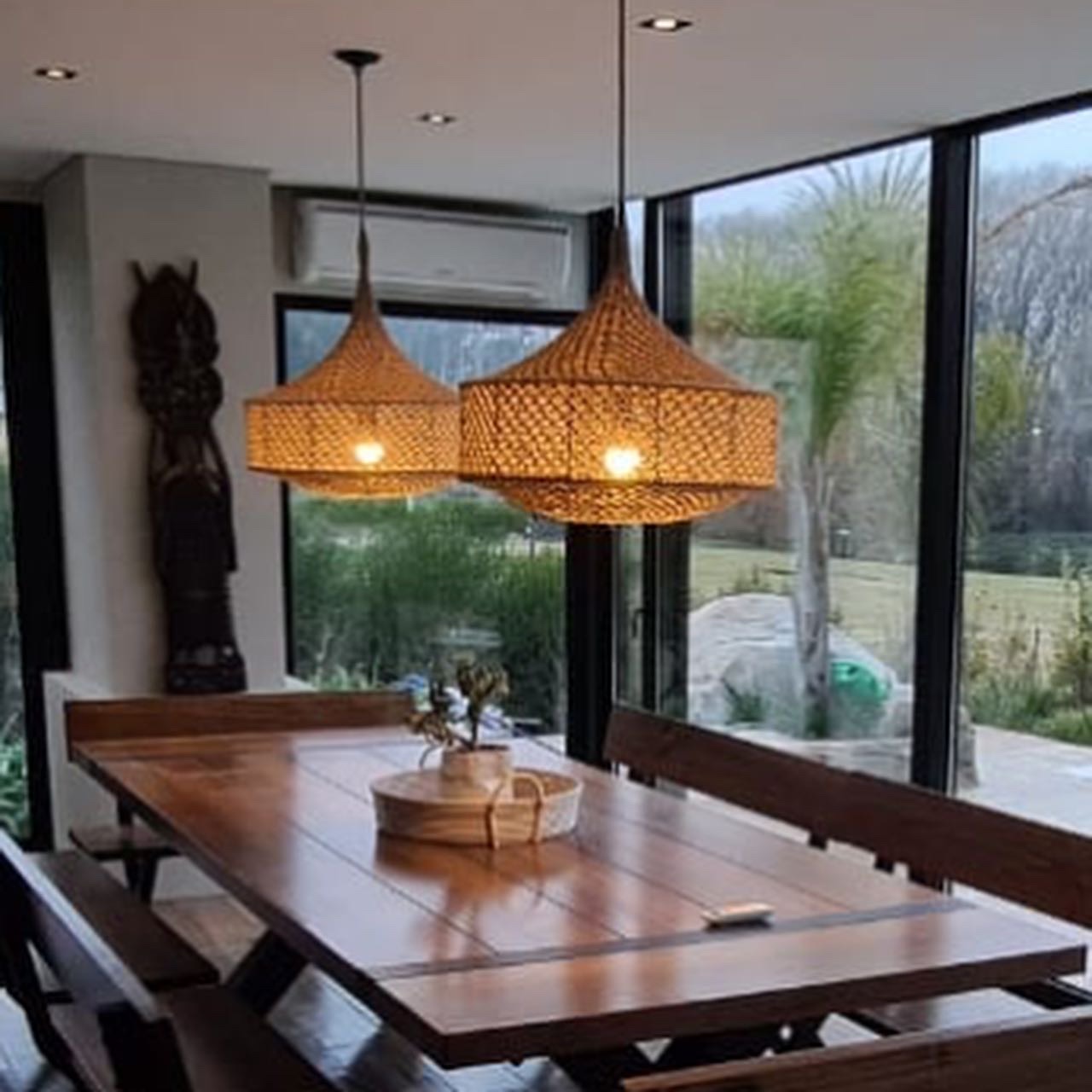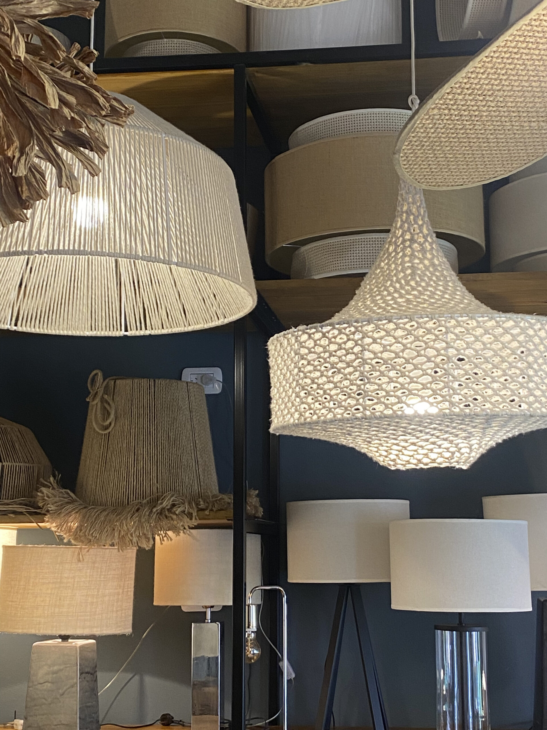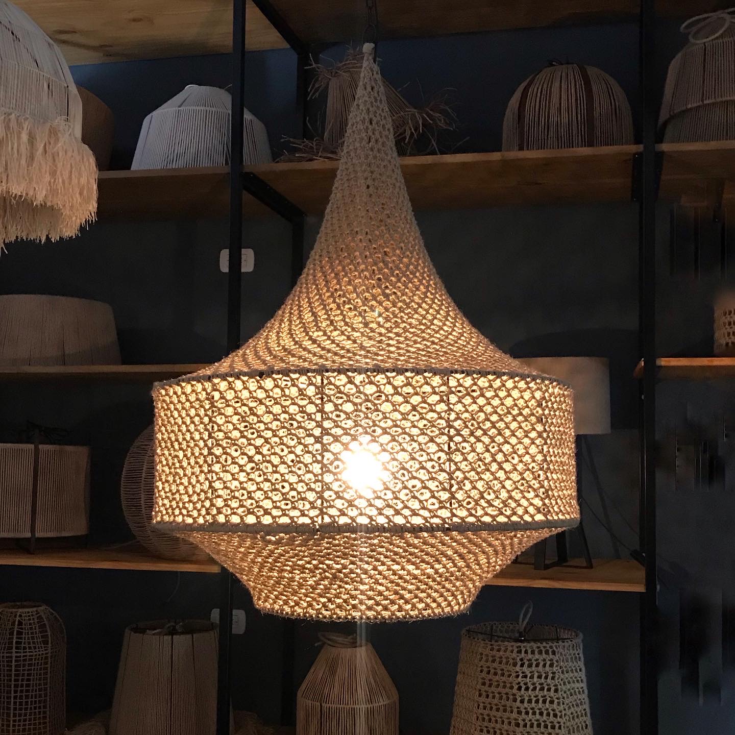 Lampara colgante tejida a croche en hilo de yute. Disponible en 3 tamaños