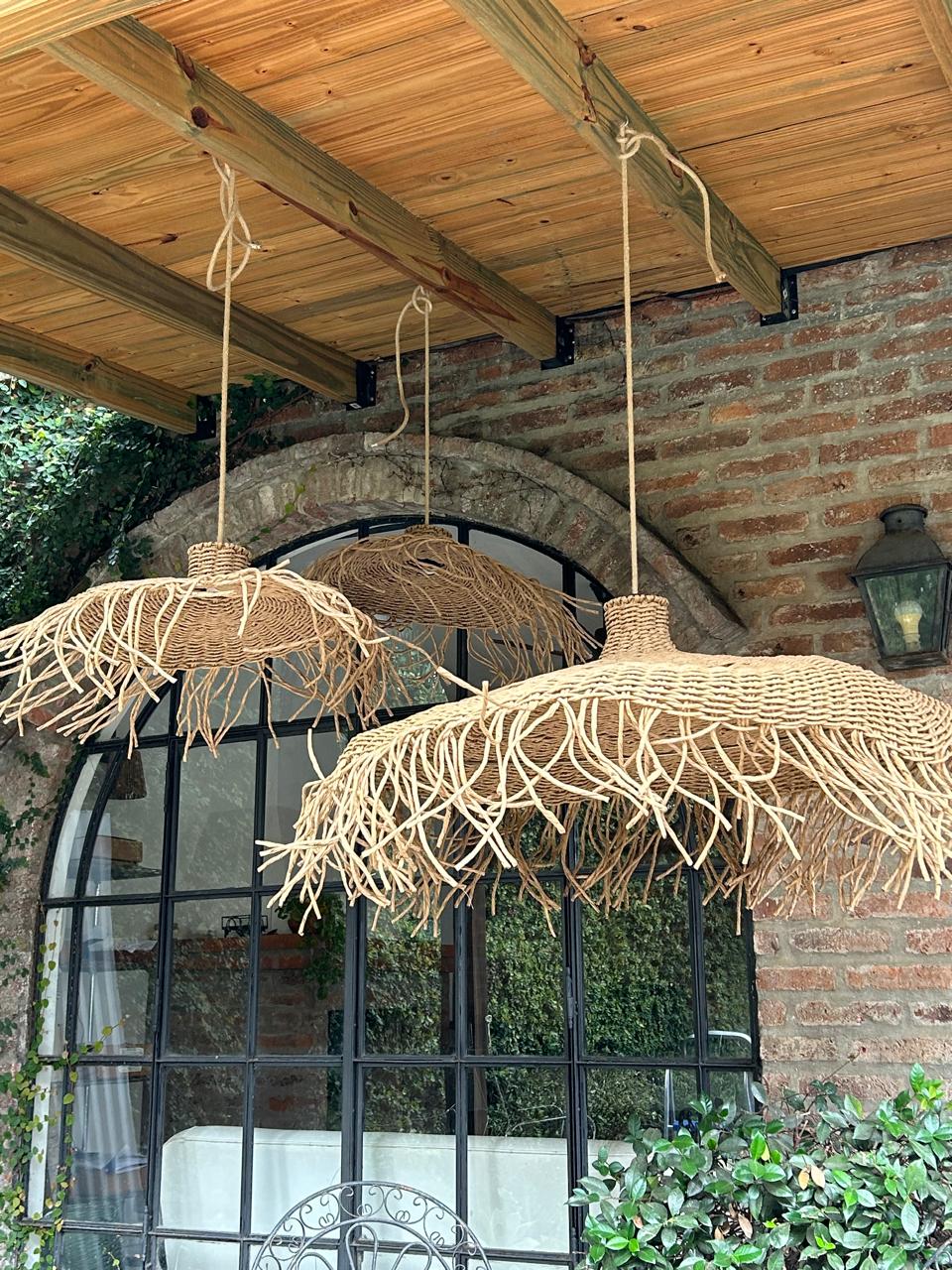 Lámpara fabricada en hilo de papel en color kraft o negro. Disponible en diferentes tamaños