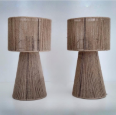Lámpara de mesa tejida en hilo de papel, hilo de yute, o hilo de algodón. Disponible en 3 tamaños.