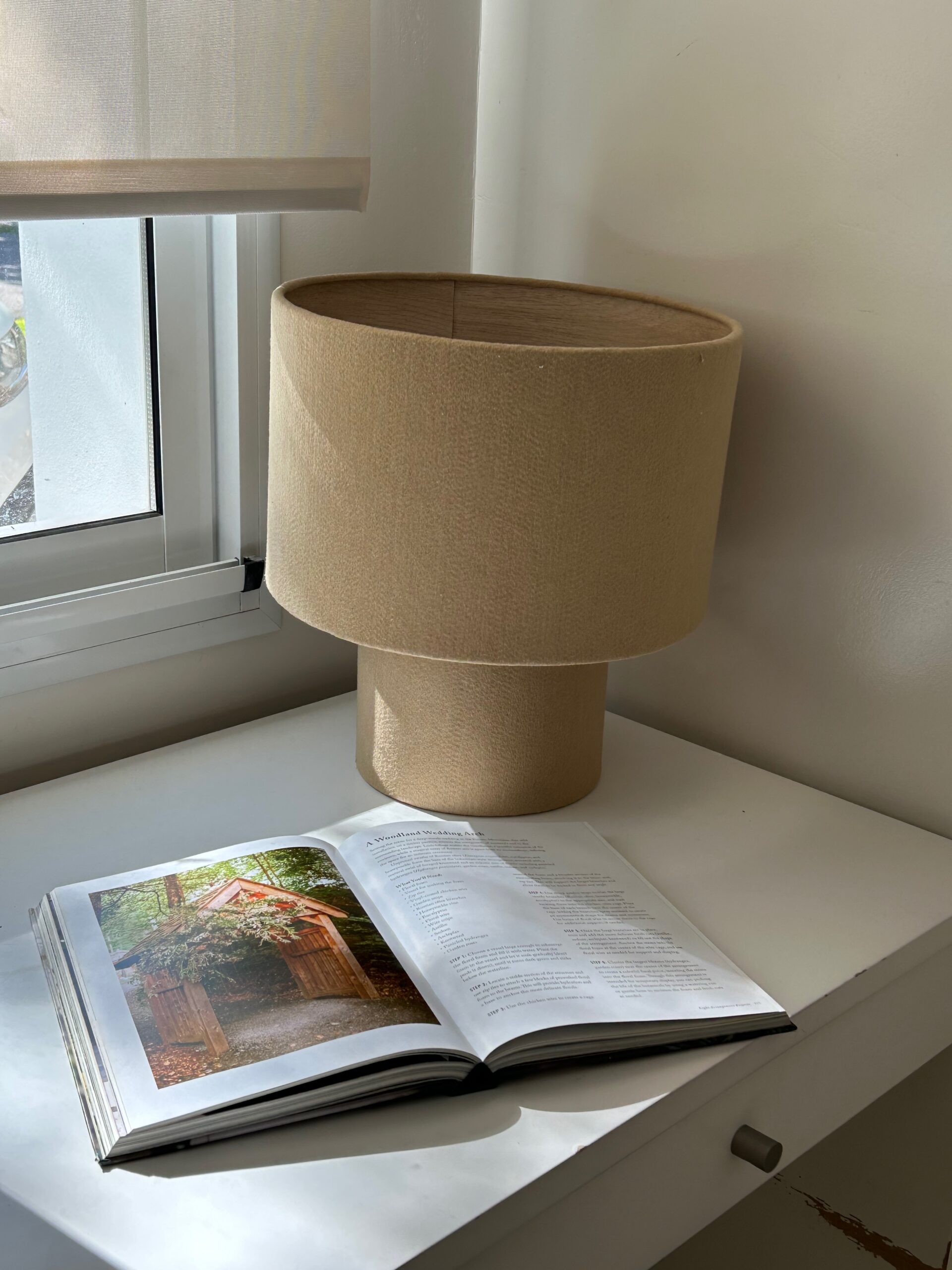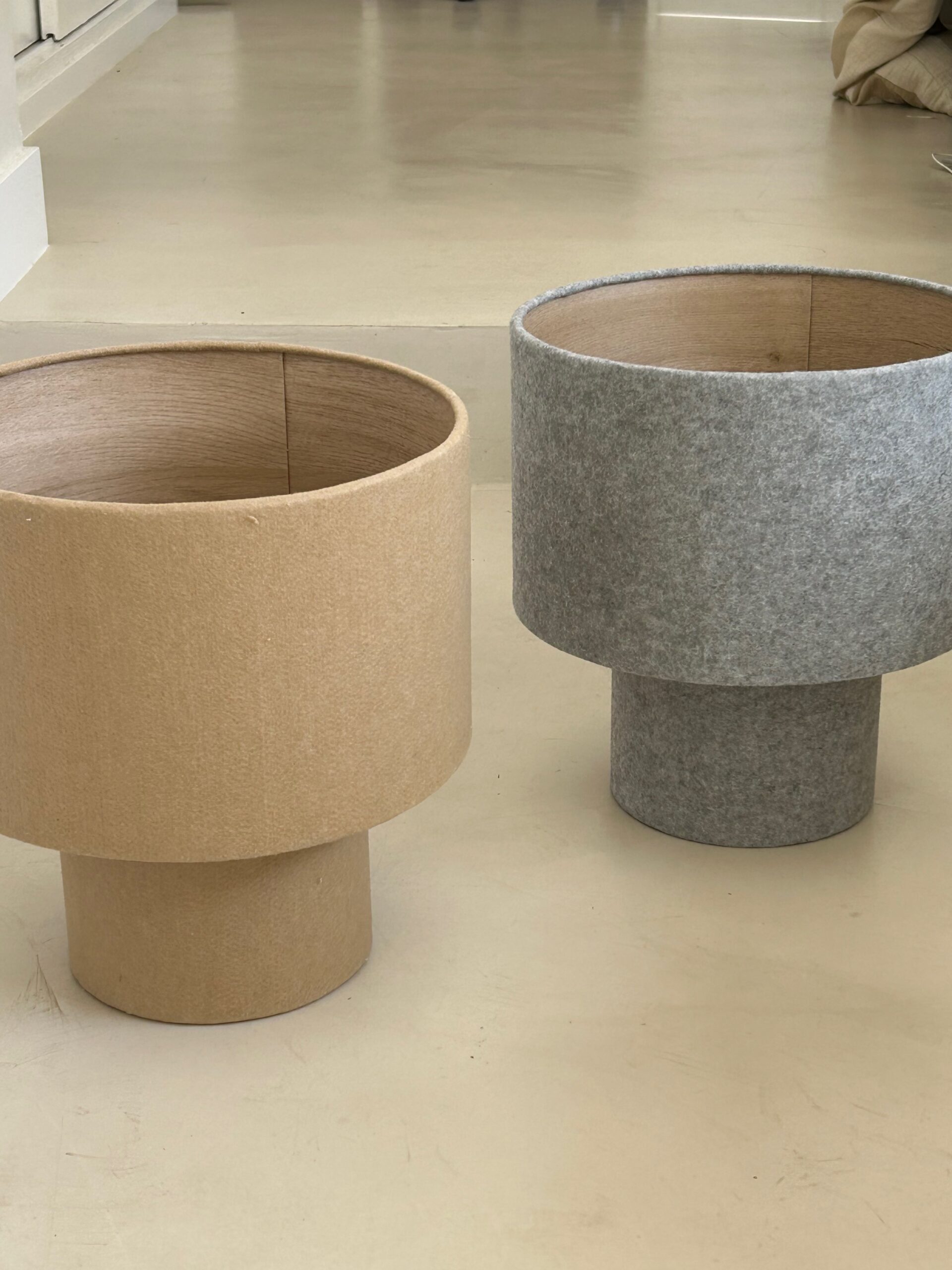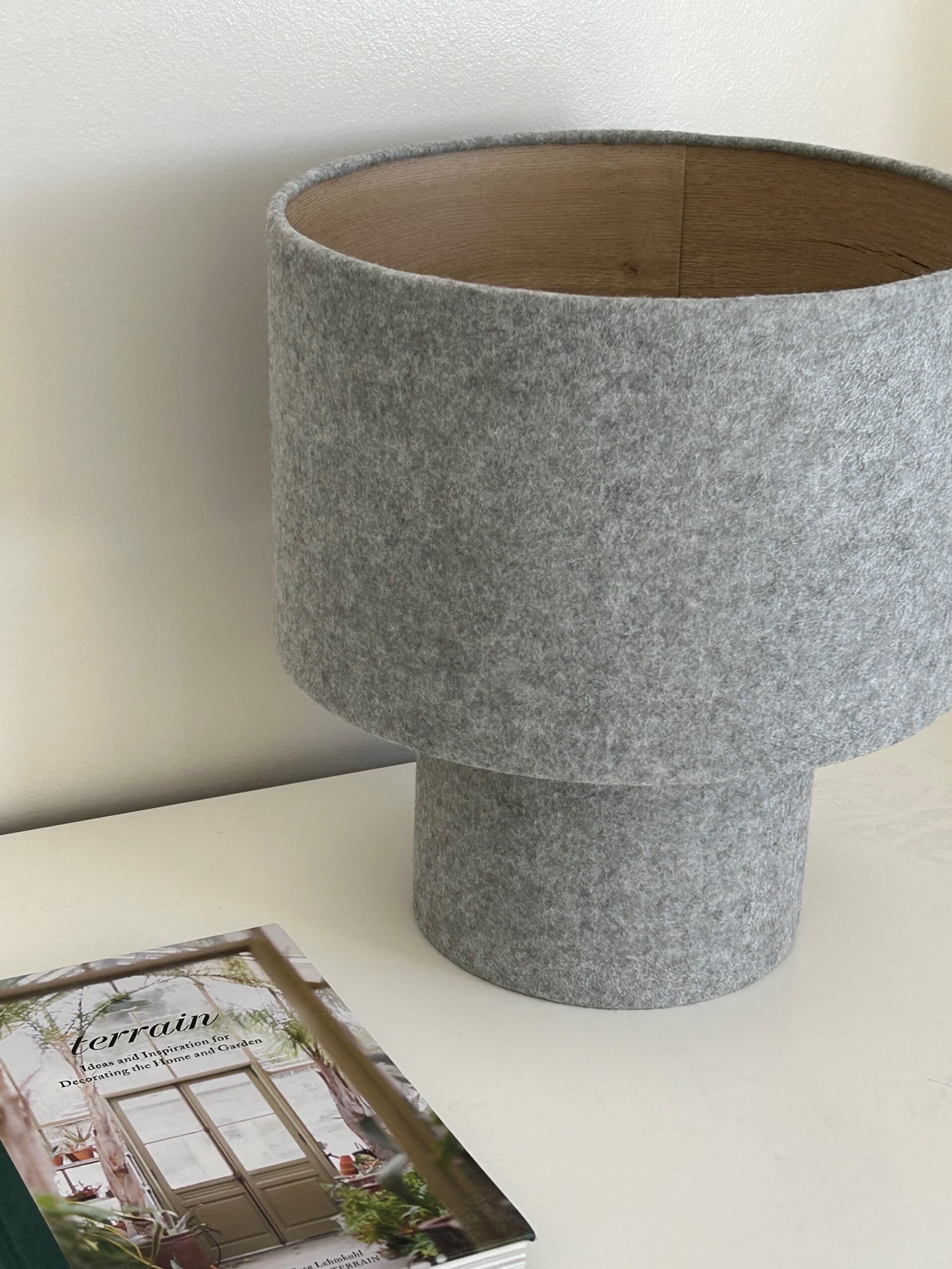 Lampara fabricada con tela de felpa disponible en diferentes colores. Pedila con o sin interior de madera.