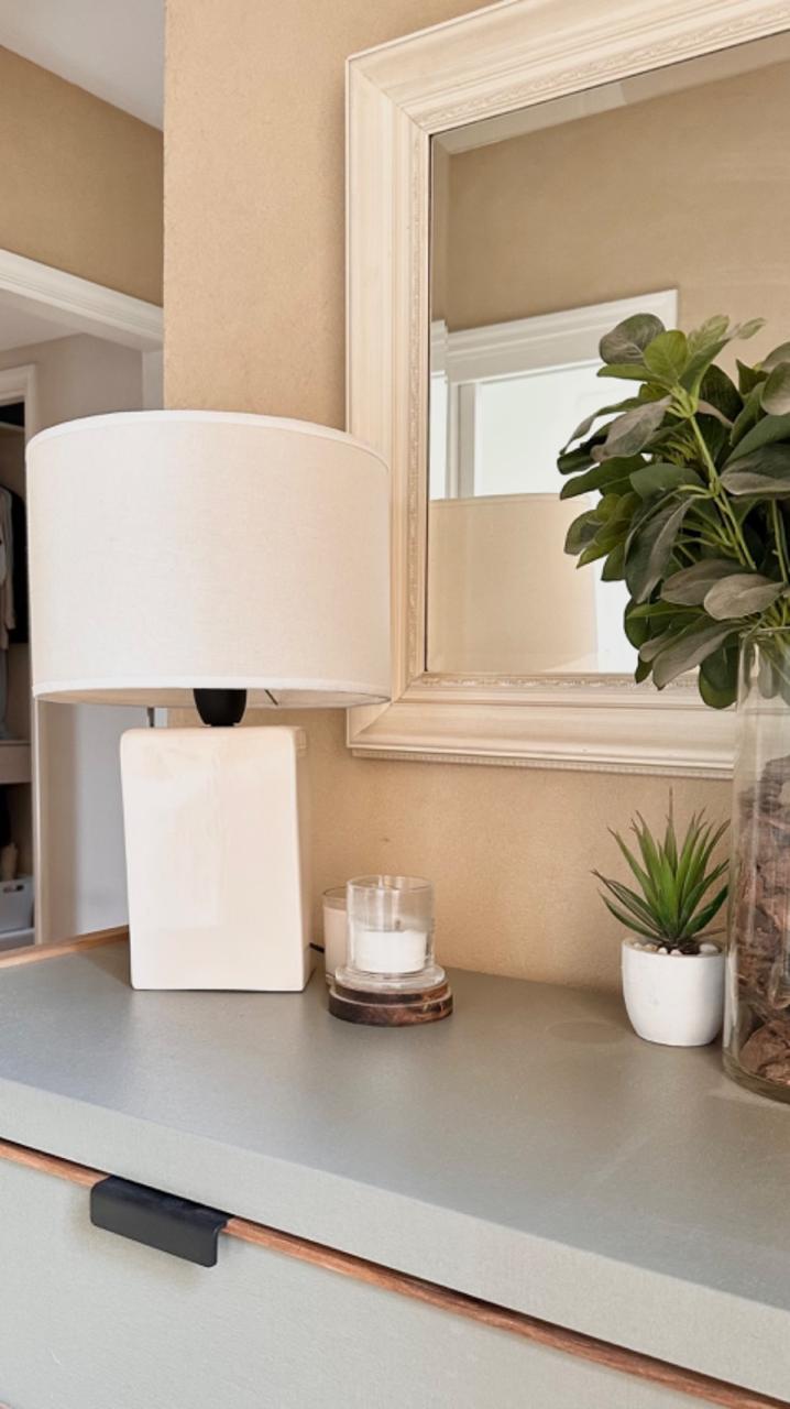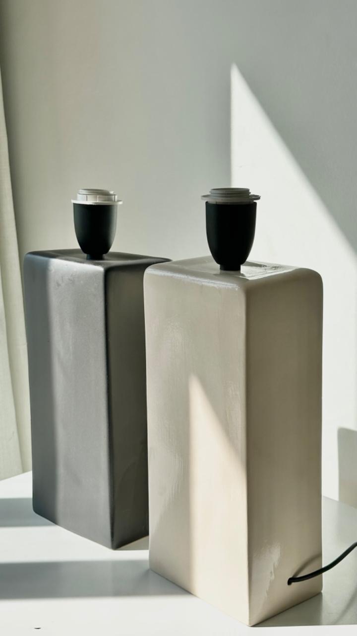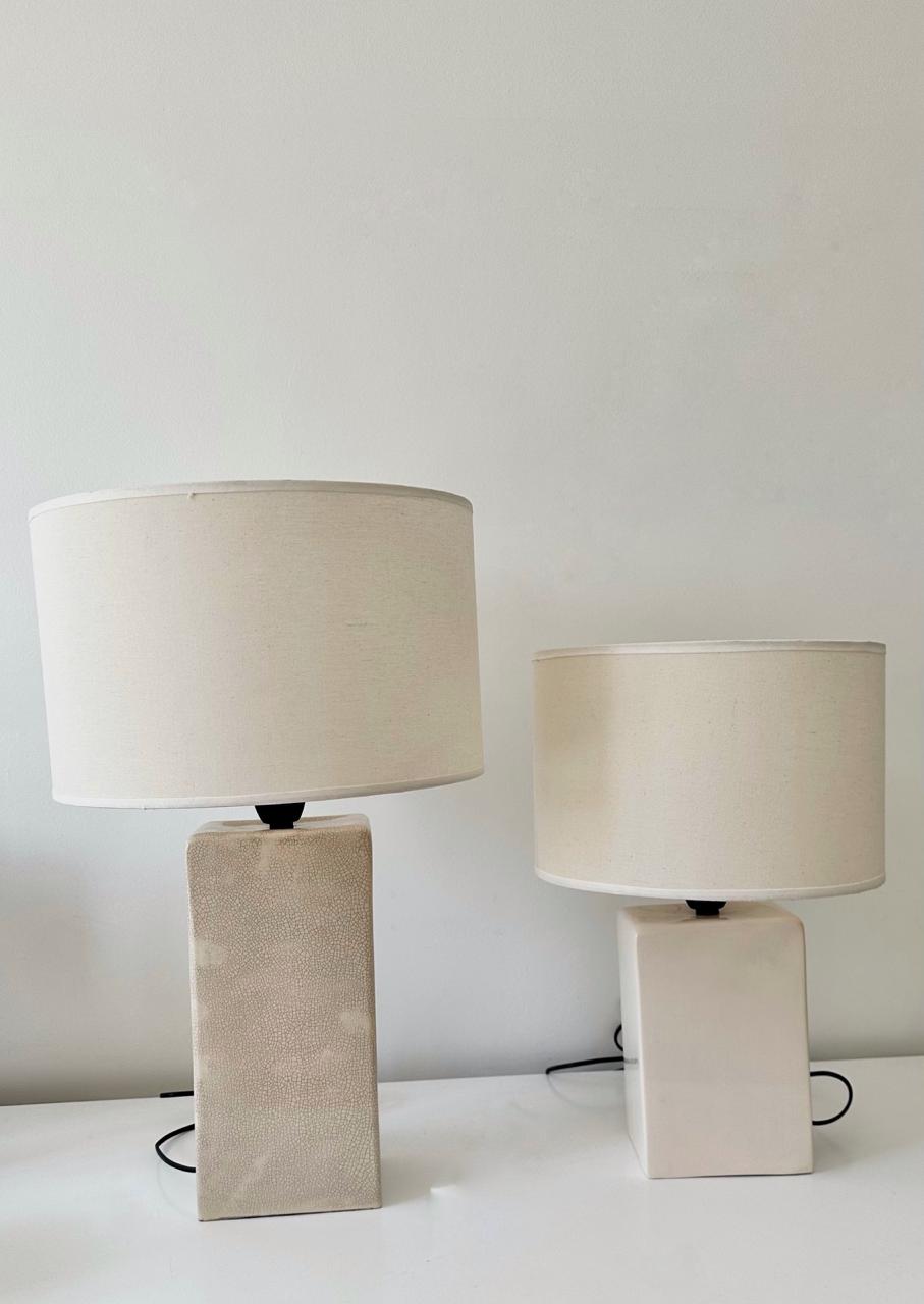 Lampara de ceramica. Disponible en dos tamaños y en diferentes colores. Pantalla de lino o arpillera.