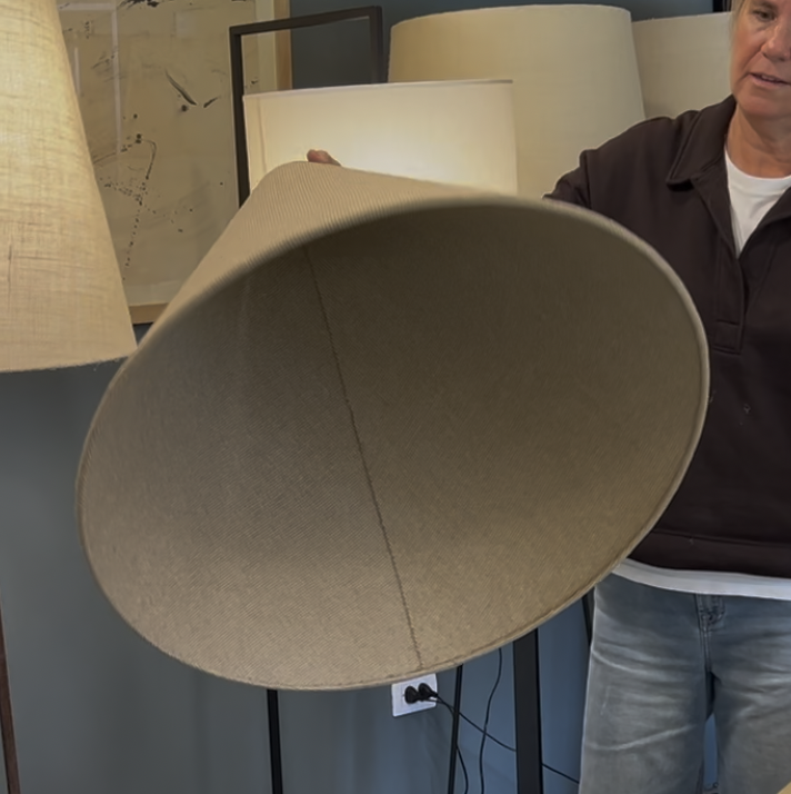 Lampara colgantes cónicas disponible en diferentes tamaños. Enteladas por dentro y por fuera con tela simil rafia de algodon. Las lamparas se entregan electrificadas y listas para instalar. Ideal para combinar y colgar en ramillete.