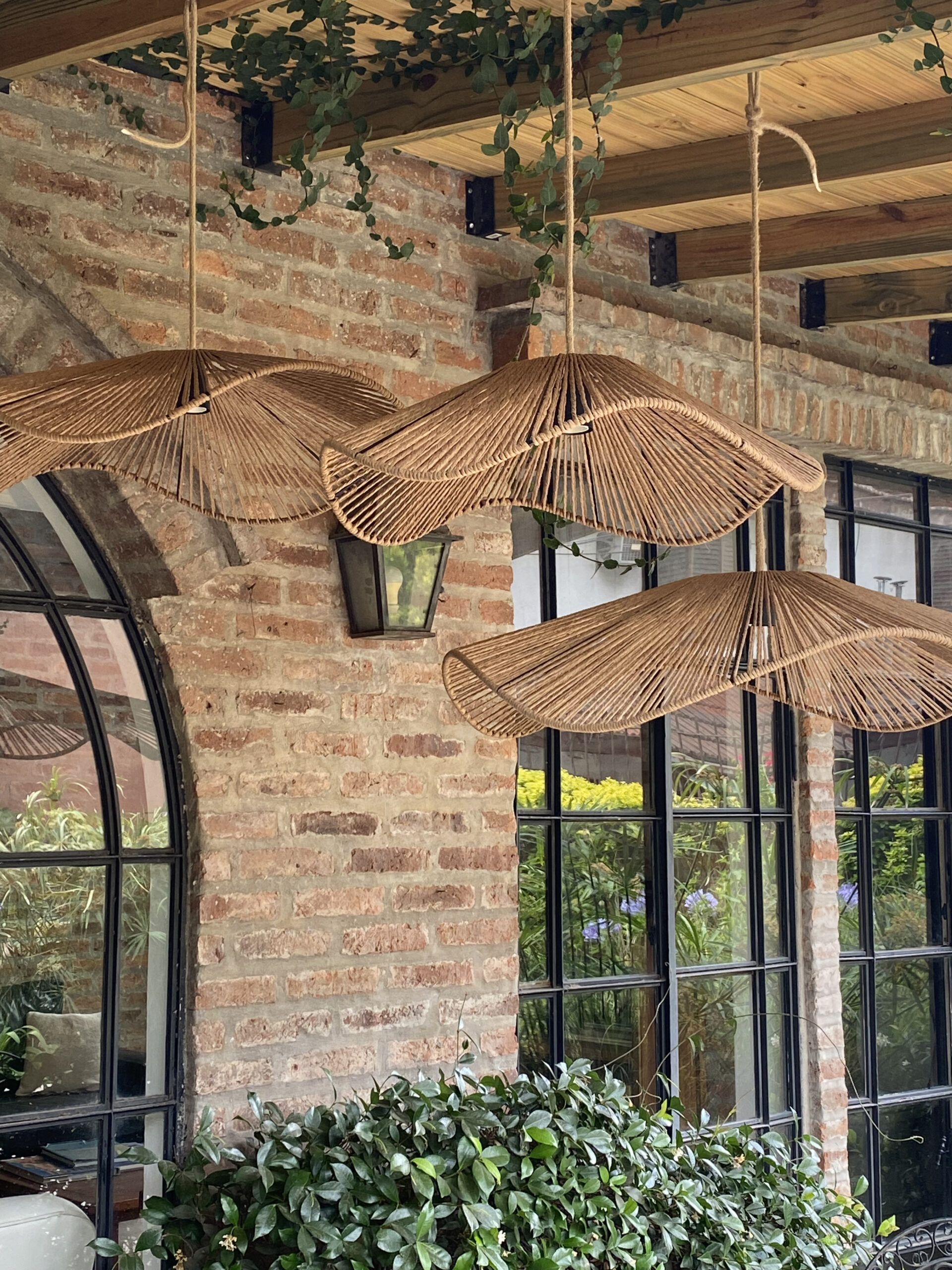 Lampara ondulada tejida en hilo de papel. Disponible en kraft o negro.
